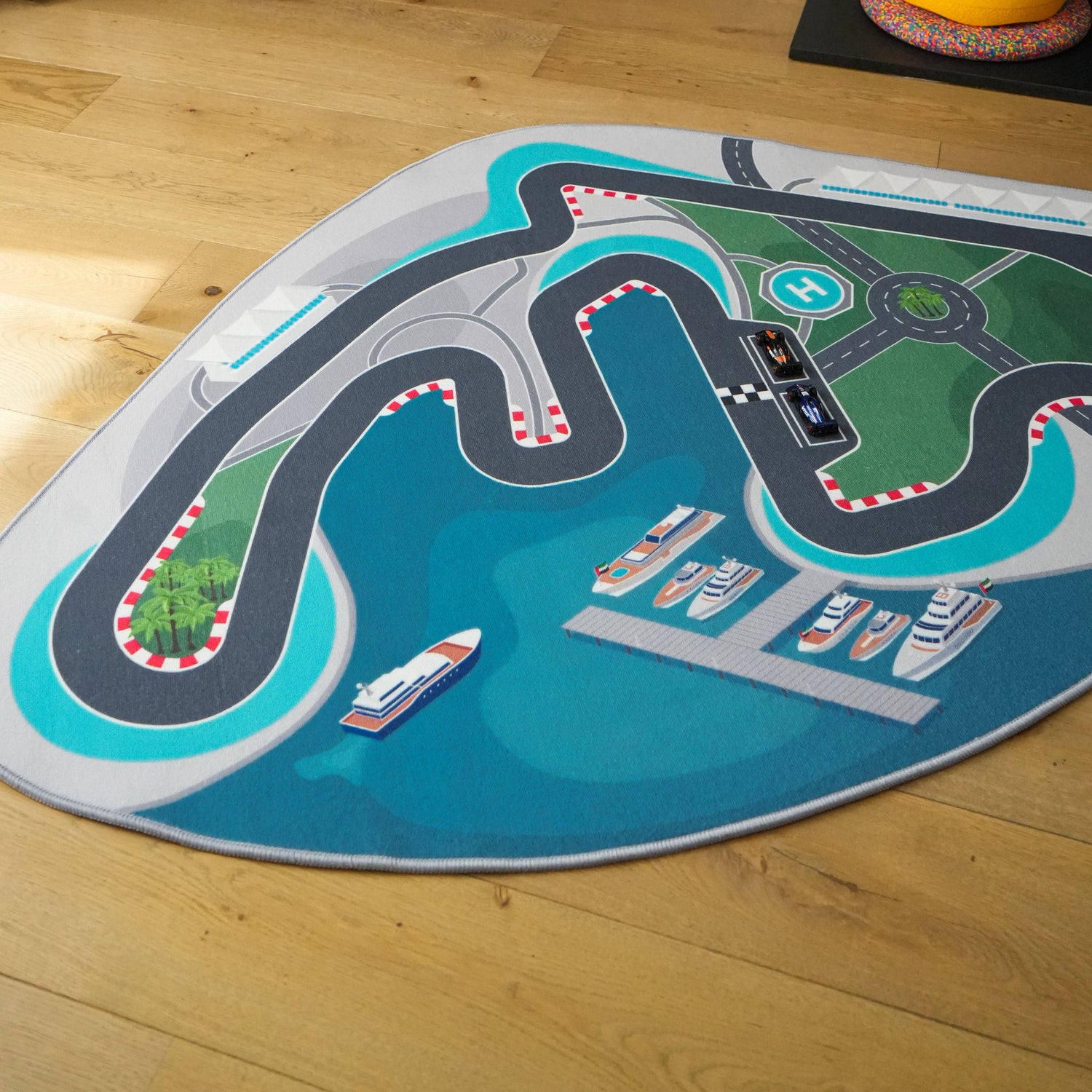 La largeur du circuit est spécialement calibrée pour accueillir 1 à 2 voitures côte à côte selon les modèles.
