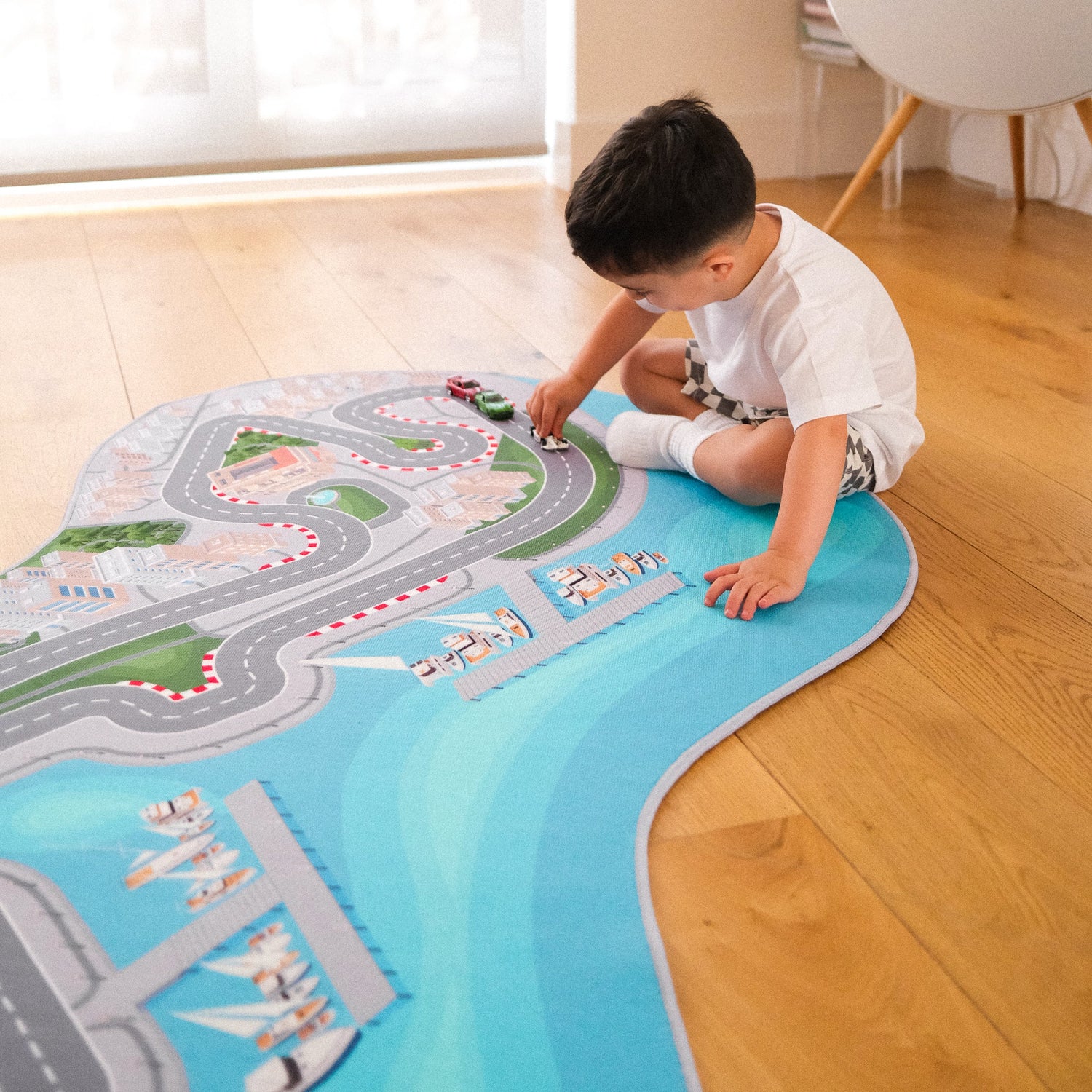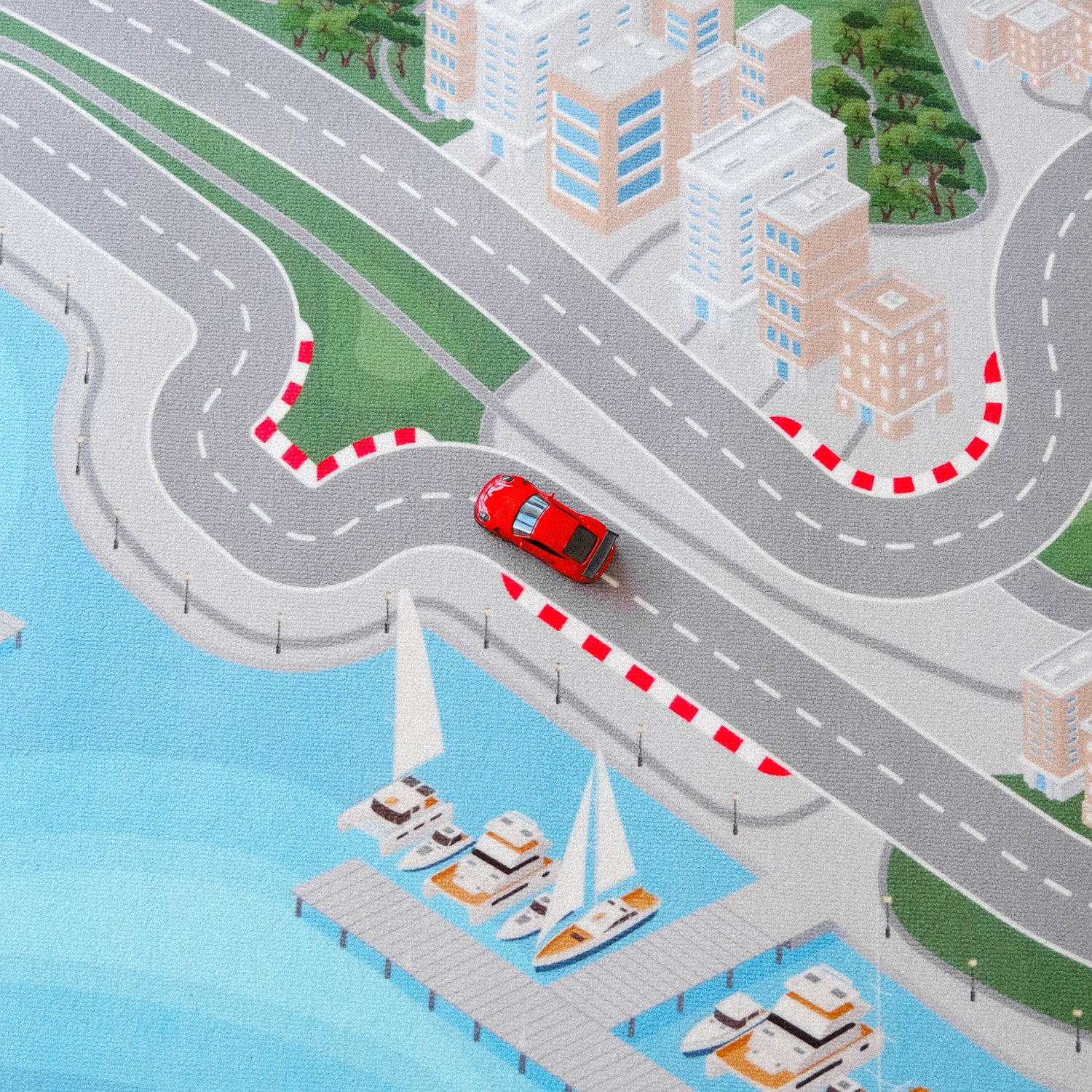 Le tapis utilise une fibre douce au toucher, parfaite pour s’agenouiller ou jouer pendant des heures.