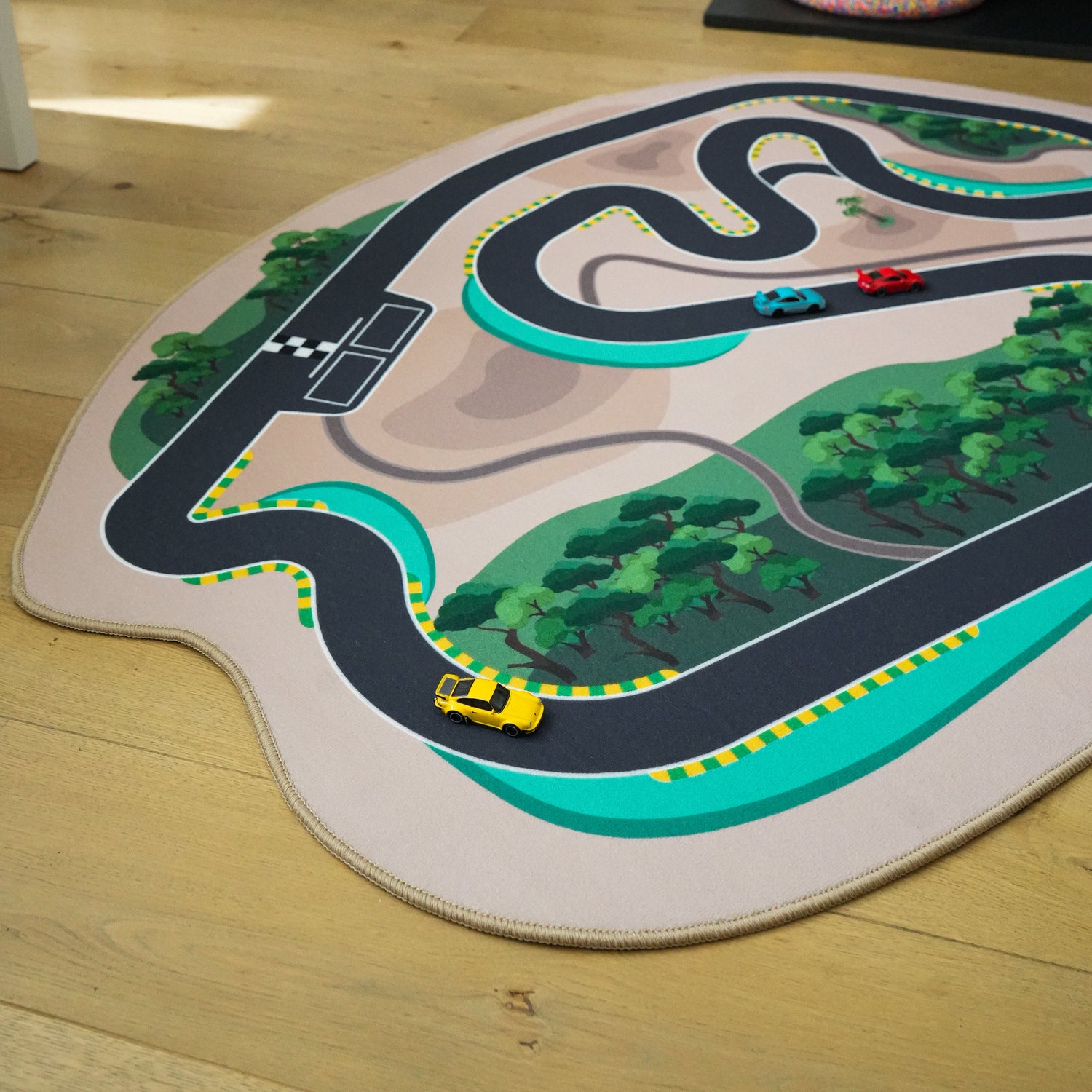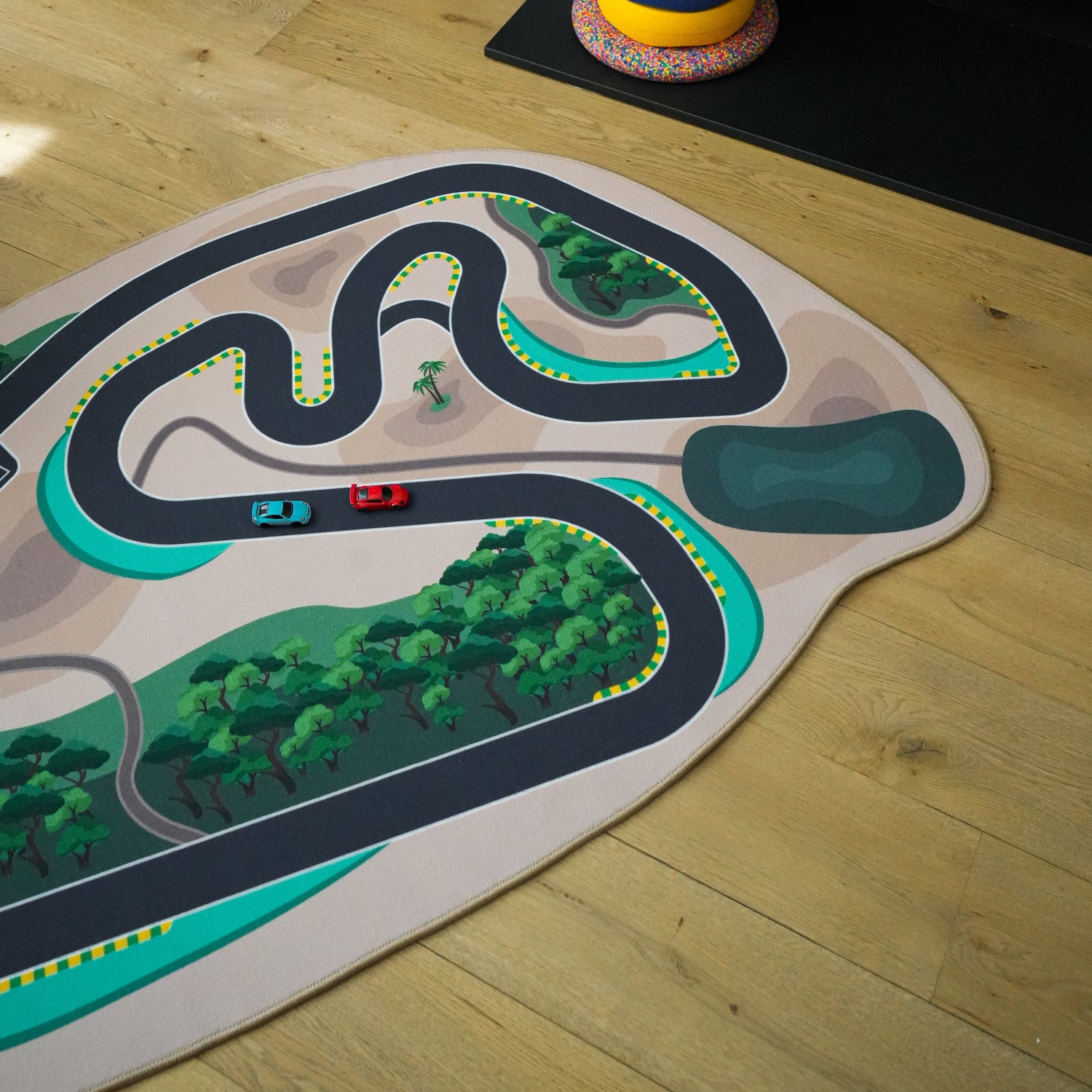 La largeur du circuit est spécialement calibrée pour accueillir 1 à 2 voitures côte à côte selon les modèles.